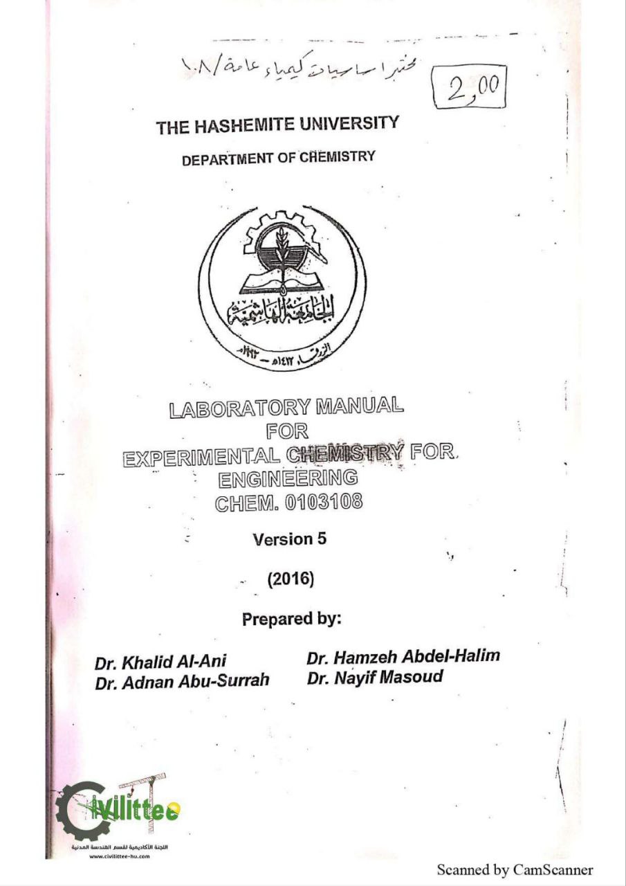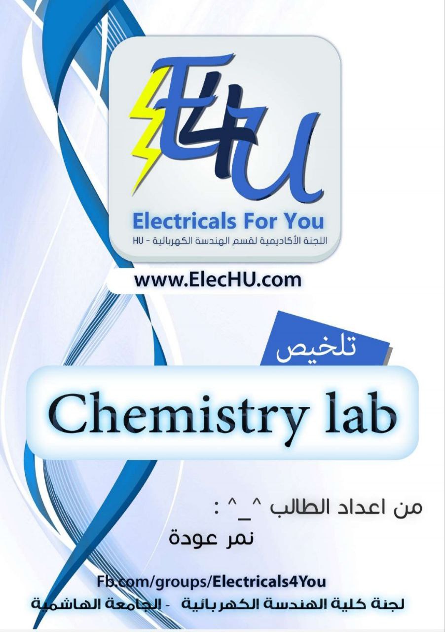 تركز هذه المادة على السلامة وقواعد المختبر، وتقنيات العمل المخبرية الأساسية، بالإضافة إلى إجراء تجارب مختارة لتوضيح بعض الموضوعات المهمة مثل: الحسابات الكيميائية، الخواص التجميعية (Colligative Properties)، الكيمياء الحرارية (Thermochemistry)، التوازن الكيميائي وثابت حاصل الذوبان، الأس الهيدروجيني (pH) ومحاليل العازل (Buffer Solutions)، الكيمياء الكهربائية (Electrochemistry)، والكيمياء العضوية.