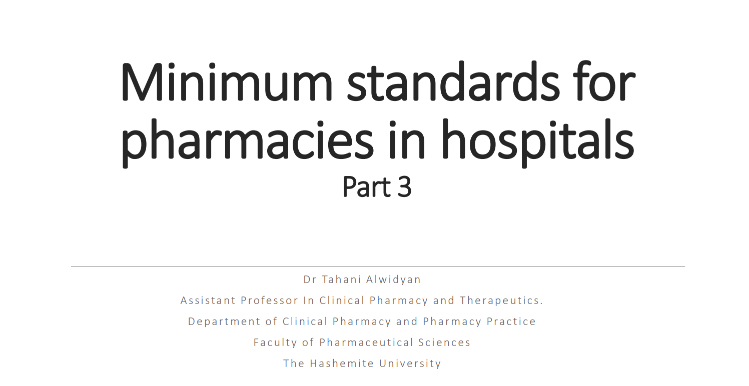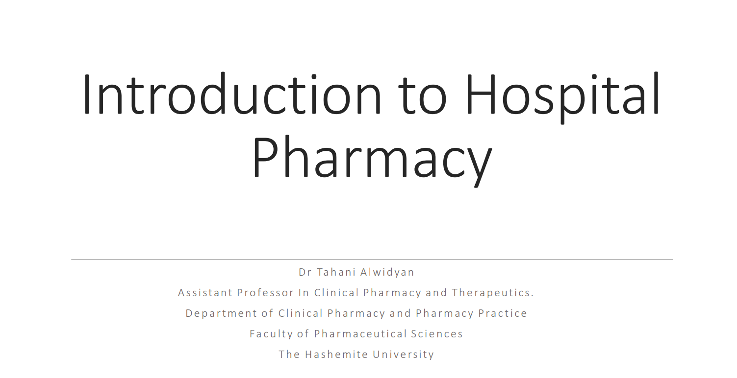 توفر هذه المادة للطلاب المعرفة والفهم لمسؤوليات الصيدلي في المستشفى. تناقش المادة عدة مواضيع مرتبطة بممارسة الصيدلة في المستشفيات بهدف ضمان تقديم رعاية صحية مناسبة وكافية للمرضى ودعم الكوادر الصحية. كما تركز على تطوير وتعزيز مهارات التواصل الفعّال لدى الطالب مع جميع الأطراف المشاركة في ممارسة الصيدلة بالمستشفى.