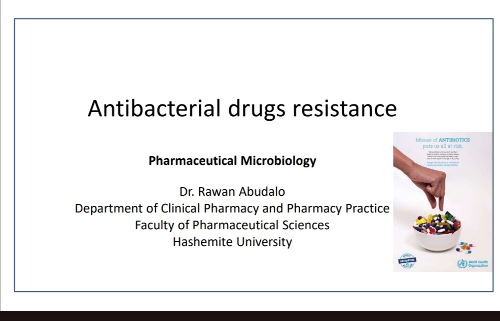 كما تهدف إلى تمكين الطالب من فهم آليات مقاومة البكتيريا للمضادات الحيوية (Mechanisms of Bacterial Resistance) وطرق السيطرة على هذه المشكلة (Control Strategies)، بما يضمن الاستخدام الأمثل والفعّال للمضادات الحيوية في الممارسة السريرية.