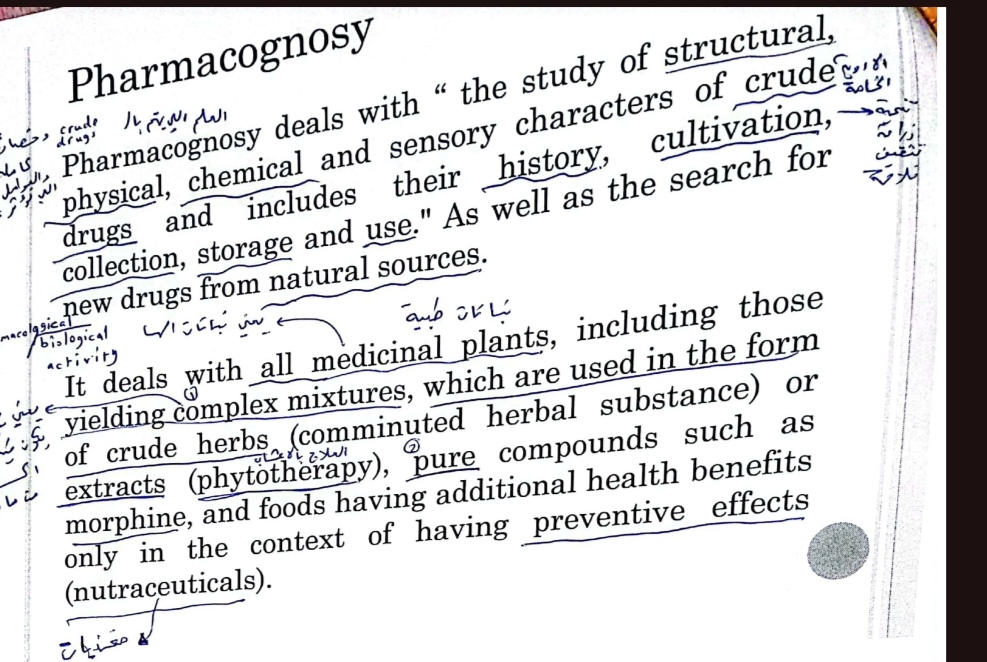 تتناول هذه المادة المفاهيم الأساسية في علم العقاقير (Pharmacognosy) والنباتات الطبية، من حيث تصنيفها (Classification) وتمييز مكوناتها (Identification of Components).