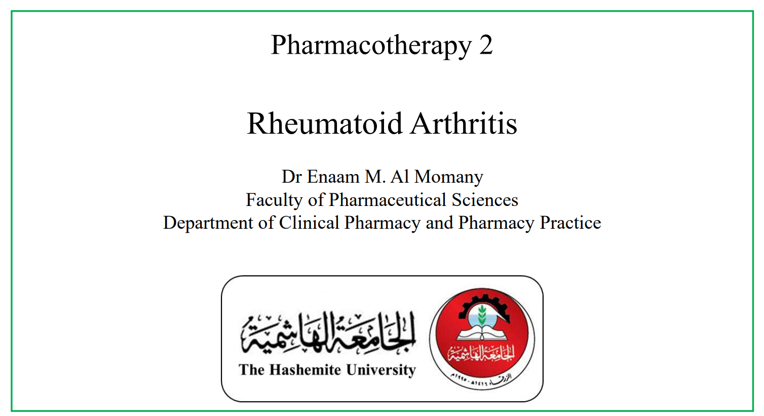تعلّم هذه المادة طلاب الصيدلة في السنوات الأخيرة كيفية دمج معرفتهم في العلوم الطبية والحيوية والصيدلانية مع العلاج الدوائي (Pharmacotherapy) لاتخاذ قرارات وحكم سريري منطقي بشأن رعاية المرضى بطريقة تركز على المريض وتُطبق ضمن فريق صحي متعدد التخصصات.