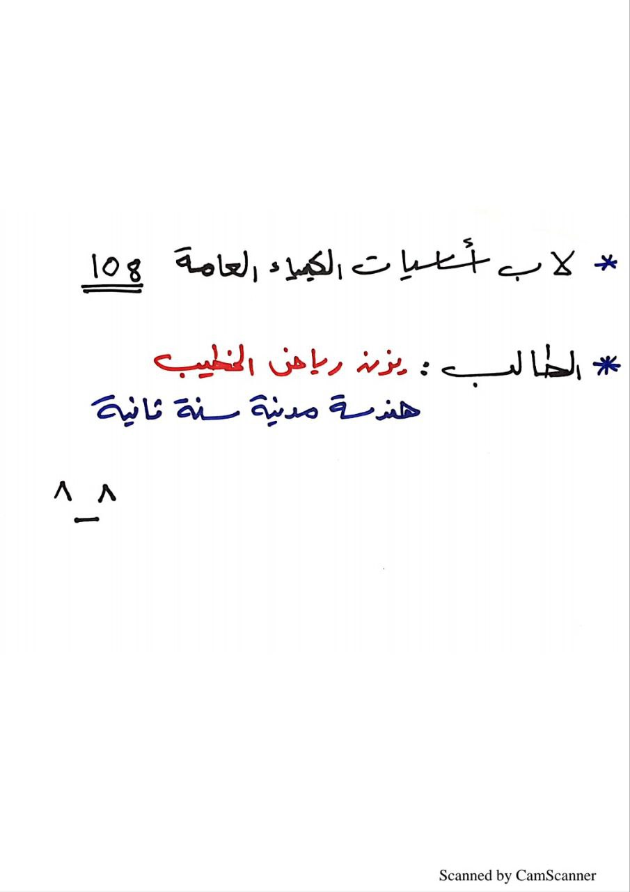 تركز هذه المادة على السلامة وقواعد المختبر، وتقنيات العمل المخبرية الأساسية، بالإضافة إلى إجراء تجارب مختارة لتوضيح بعض الموضوعات المهمة مثل: الحسابات الكيميائية، الخواص التجميعية (Colligative Properties)، الكيمياء الحرارية (Thermochemistry)، التوازن الكيميائي وثابت حاصل الذوبان، الأس الهيدروجيني (pH) ومحاليل العازل (Buffer Solutions)، الكيمياء الكهربائية (Electrochemistry)، والكيمياء العضوية.