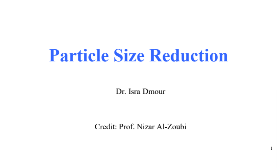 تتناول هذه المادة المفاهيم التقنية الأساسية الخاصة بمعالجة وتوصيف المساحيق الدوائية (Pharmaceutical Powders)، وتشمل مواضيع مثل تحليل حجم الجسيمات (Size Analysis)، والطحن والتقليل الحجمي (Size Reduction)، والفصل والخلط (Separation and Mixing)، وانسيابية المساحيق (Powder Flow)، والتكوير (Granulation)، والتجفيف (Drying).